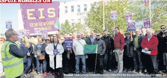 College lecturers in Paisley are taking part in two days of strike action as the row over their jobs continues. EISFELA branch secretary at West College Scotland said lecturers. Scottish FE strike coming after bosses reject their own offer.