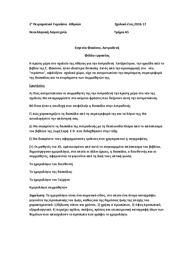 Neoellhnikh Glwssa A Gymnasioy Enothta 1 Fyllo Ergasias